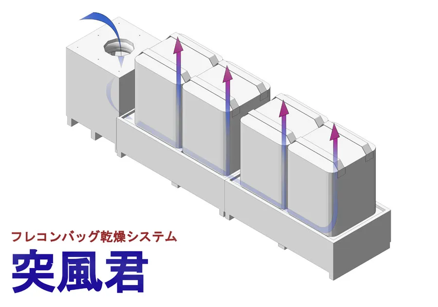 1~8t規模(1バッチ4フレコン程度)の穀物・豆類の乾燥に好適で作業性抜群。専用フレコンバッグのまま乾燥可能。
